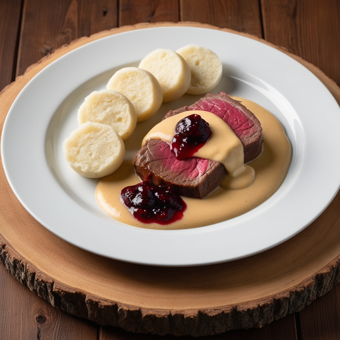3. 150g Bratislava-style (vegetable, cream) roast pork with bread dumplings 140,-