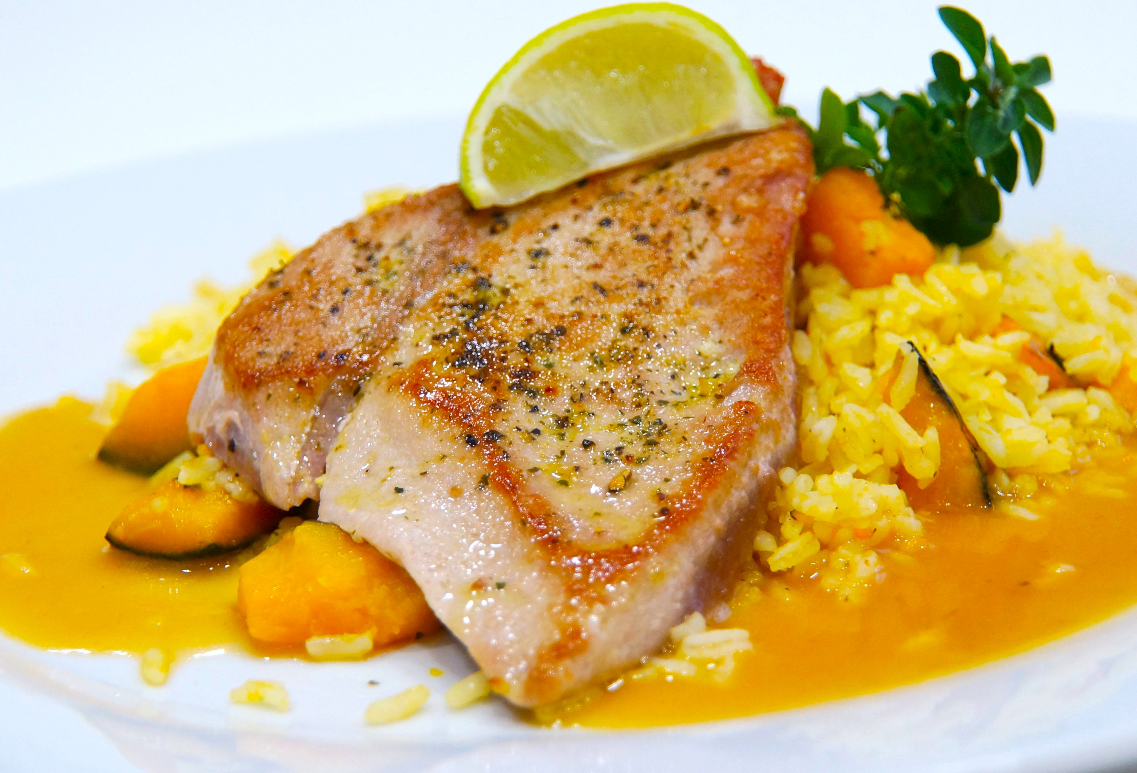 4. 150g Pork tenderloin with porcini mushroom sauce, fries 155,-